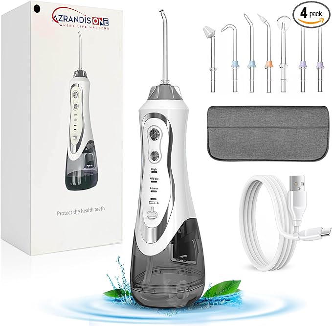 Cordless Water Flosser – Portable, Rechargeable, IPX7 Waterproof, 3 Modes, 7 Nozzles (White)
